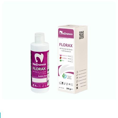 ژل فلوراید FLORAX حاوی سدیم فلوراید، جهت فلوراید تراپی می باشد که غلظت موضعی بالایی از یون فلوراید را داراست. یون فلوراید عاملی مهم در ممانعت از پوسیدگی و حساسیت دندان بخصوص در کودکان محسوب می گردد.